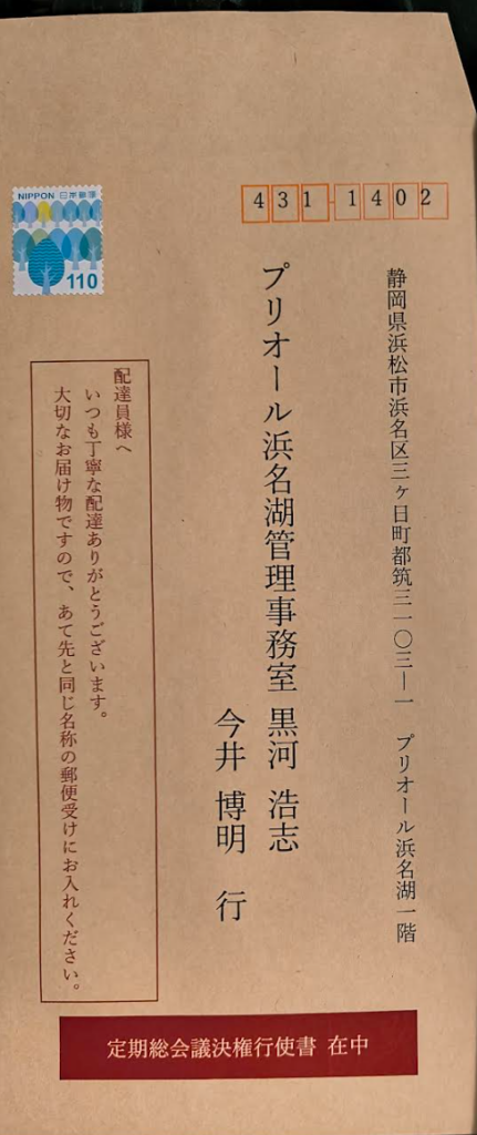 投函しないようご注意ください。皆様もご存知の通り、旧役員らは管理事務室を権限なく占拠しています。